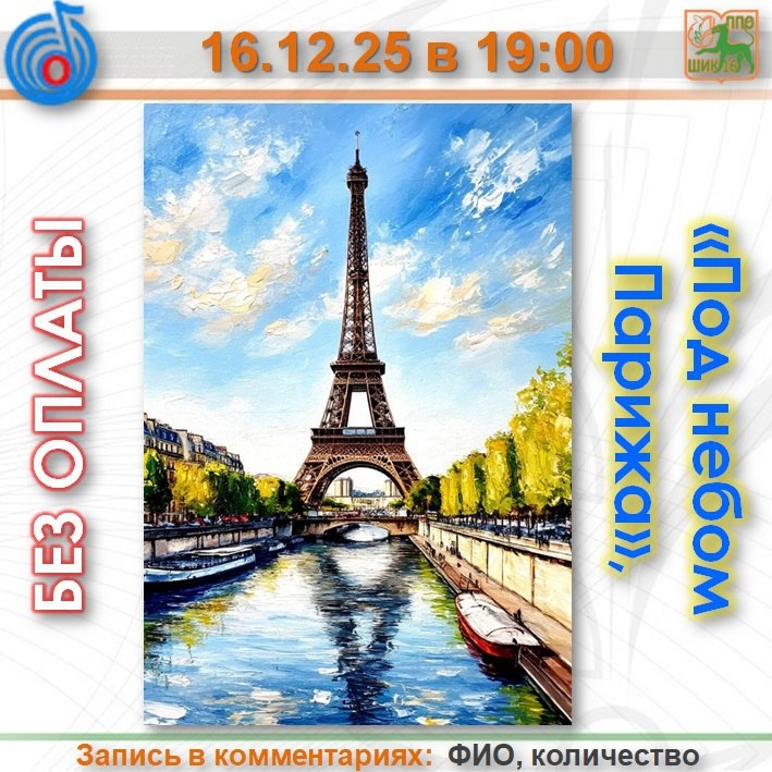 🗼ПОД НЕБОМ ПАРИЖА 📆 16 декабря в 19:00 🏛КЗ "Останкино" 👛 БЕСПЛАТНО 🎫 В наличии 5 билетов Достаточно произнести слово «Франция», как в воображении возникает образ Эйфелевой башни, а в воздухе начинает ощущаться ни с чем не сравнимый аромат Chanel. Как не вспомнить знаменитые парижские показы высокой моды и прославленный Лувр? Особую любовь в России занимает французская киноклассика . И конечно же песни Эдит Пиаф, Джо Дассена, Мирей Матье, Патрисии Каас, Далида, Ванесса Паради.Они на слуху буквально у каждого. Приходите, чтобы окунуться в романтическую атмосферу. Екатерина Французова — Вокал Элина Шатская — Вокал Михаил Зыков — Вокал Григорий Голицын — Вокал Роман Котляров — Вокал Богдан Хамперов — Вокал Музыкальный ркуоводитель — Шатский Алексей Андреевич. Музыкальное сопровождение — Бэнд-Центра Развития Культуры.