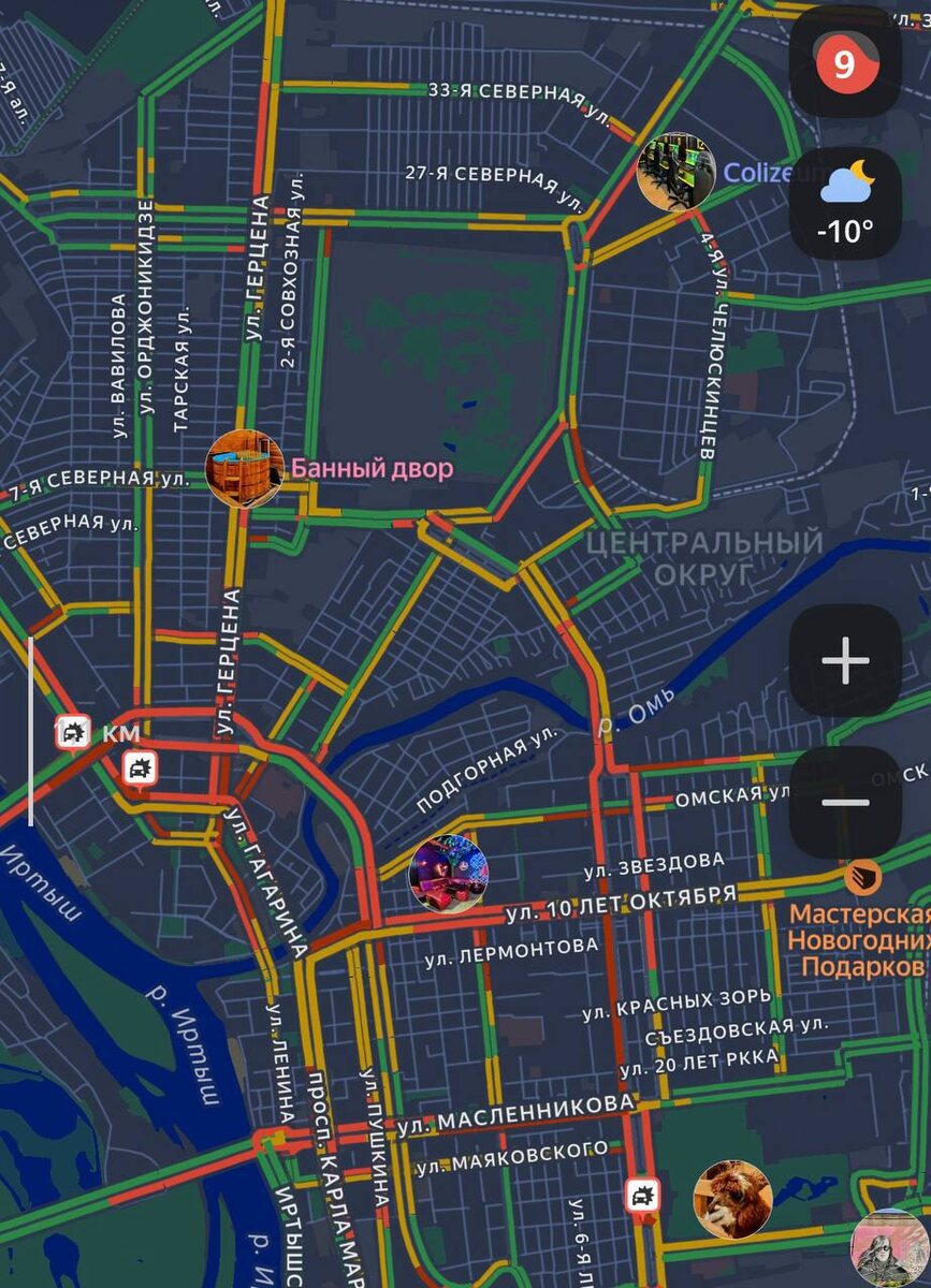 😢Зима наступила в Омске. Вечерний город сковали 9-балльные пробки По информации «Яндекс Карт» и «2ГИС» яркими цветами на картах города окрасились: проспект Карла Маркса, улицы Масленникова, Маршала Жукова, Ленина, Гагарина и Интернациональная, Думская. Пробки наблюдаются на Ленинградском мосту и метромосту. Самый сложный участок на выезде с левого берега через мост имени 60-летия ВЛКСМ. Пробки также наблюдаются на Ленинградском мосту и метромосту.