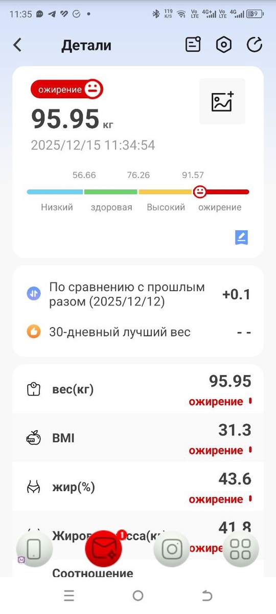 Ничего не форсирую. Питаюсь нормально. В зал хожу по тренировочному плану и не усердствую. Просто делаю, что должна. А тело само что-то отмеряет. На этапе, где я сейчас нахожусь, уже сложно что-то планировать в отношении каких-то конкретных цифр. Колебания веса недостоверны. День так, день этак. Например, даже этот вес больше на целый кг. чем был на прошлой неделе. И ничего не менялось. В этом смысле недели проходят как под копирку. Т.е. нет повода прибавлять целый кг. Но его и не было в плане отвешивать целый кг. Так что я просто уже не реагирую. Выбираю среднее. Чаще вижу цифру 95 - ее и фиксирую. Буду чаще видеть 94, посчитаю что уменьшилась на кг. Как-то так.