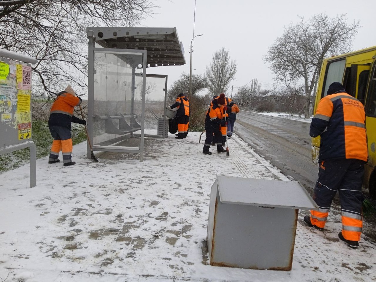 Также от снега и наледи чистят остановки общественного транспорта. Сегодня основные работы ведутся в Жовтневом и Приморском районах города.