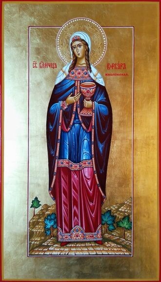 едином Творце мира и тайно приняла христианство. Узнав об этом, Диоскур предал дочь мучителям. После долгих истязаний Варвару казнили. По преданию, вскоре её отца и правителя города поразила молния. Мощи святой ныне покоятся во Владимирском соборе Киева. На Руси праздник именовали: Этот день считался «бабским» праздником, поскольку святую почитали как