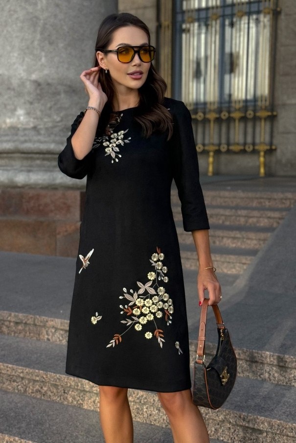 Платье замшевое чёрное с дизайнерской вышивкой URS — это универсальная модель для тех, кто ценит стиль, комфорт и качество