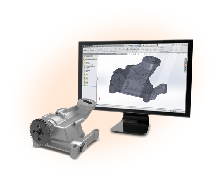 - Создание параметрической CAD-модели: Инженеры на основе данных сканирования воссоздают деталь в профессиональной CAD-системе (например, SolidWorks). Важнейший этап — перевод «мертвой» геометрии скана в модель с историей построения, editable-параметрами и правильными технологическими допусками.