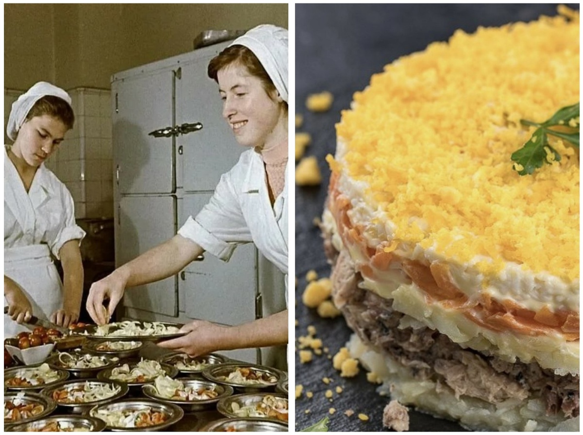 В советской кухне многое рождалось не по рецептам, а по обстоятельствам. Ограниченный выбор, простые продукты, привычка ничего не выбрасывать. Именно в такой среде и появился один из самых узнаваемых салатов эпохи - без имени, без претензий, но с характером.