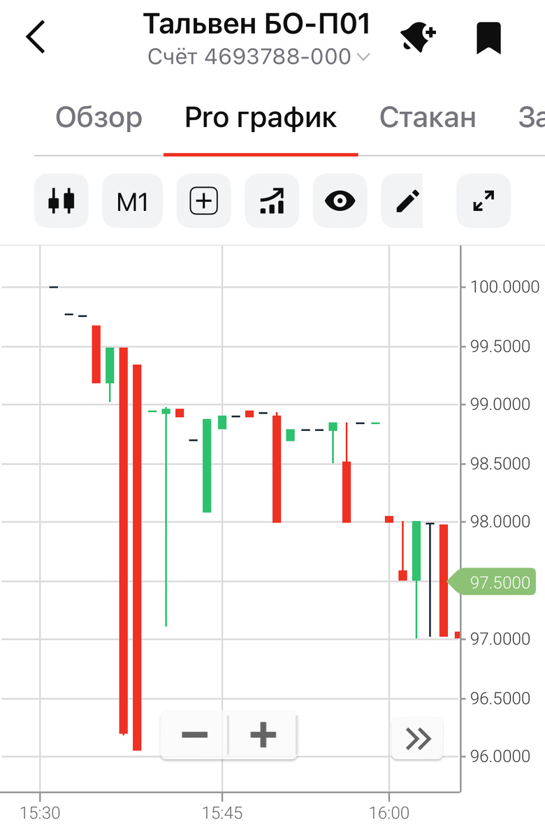 Тальвен подвел… -3% на начале торгов Влез в надежде заработать на флипинге, а тут такое… благочто купон больше стоимости маржи. Кто еще «вляпался»? #флиппинг, #облигации