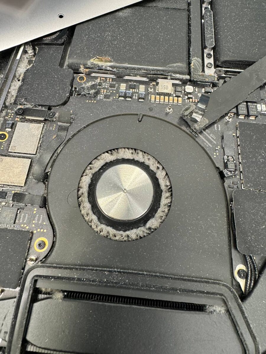 MacBook Pro 16” A2141 был залит. ❄️Косметическая чистка ❄️Чистка от пыли с заменой термопасты