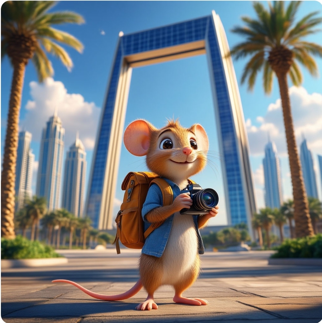 После этого она направилась в ресторан пообедать, ну а ещё позже мышка пошла в отель перевести дух после такого удивительного, захватывающего дух места, как дубайская рамка.