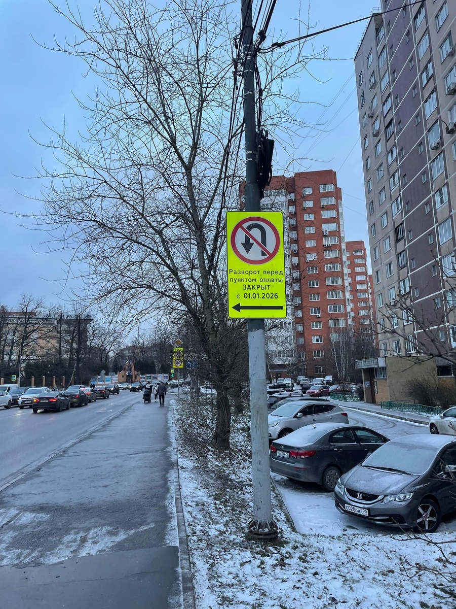 На Новоспортивной улице перед поворотом на Подушкинское шоссе появилось предупреждении о закрытии разворота на Северном обходе Одинцово