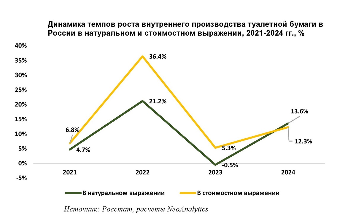 Отечественное производство туалетной бумаги в России в 2024 г. существенно увеличилось.