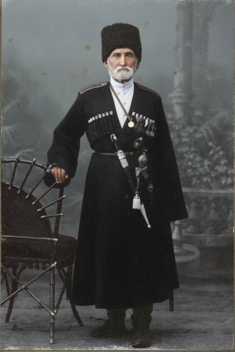 Вот как [Гайто] Газданов описывает смерть деда [Саге Газданова] (на фото): «Я помнил деда маленьким стариком, в черкеске, с золотым кинжалом. В девятьсот двенадцатом году ему исполнилось сто лет; но он был крепок и бодр, а старость сделала его добрым. Он умер на второй год войны, сев верхом на необъезженную английскую трехлетку своего сына, старшего брата моего отца; но несравненное искусство верховой езды, которым он славился много десятков лет, изменило ему. Он упал с лошади, ударился об острый край котла, валявшегося на земле, и через несколько часов умер». (@Obnovlenijemira)