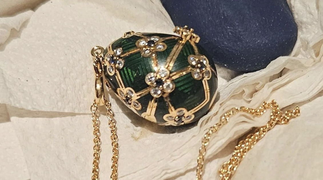 Мужчина, вероятно, страдает клептоманией: на его счету также кражи кошачьего наполнителя и техники. В Окленде 32-летний мужчина проглотил прямо в магазине подвеску в виде «яйца Фаберже», фигурирующего в фильме о Джеймсе Бонде «Осьминожка» (1983). Это заметили работники магазина, и вор был задержан, а затем арестован. Подвеска сделана из 18‑каратного желтого золота, украшена зеленой эмалью, инкрустирована 60 белыми бриллиантами и 15 синими сапфирами. Внутри корпуса находится миниатюрная золотая фигурка осьминога с глазами из черных бриллиантов.