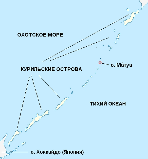 - Остров Матуа. Полагаю, за ним можно будет укрыться от Норд-Веста. - ответил я капитану, переместившись к штурманскому столу и раскрыв на нужной странице лоцию побережья Курильских островов: - Тут написано, что есть хорошее место для якорной стоянки между самим Матуа и островом Топорковым… Бухта Двойная.