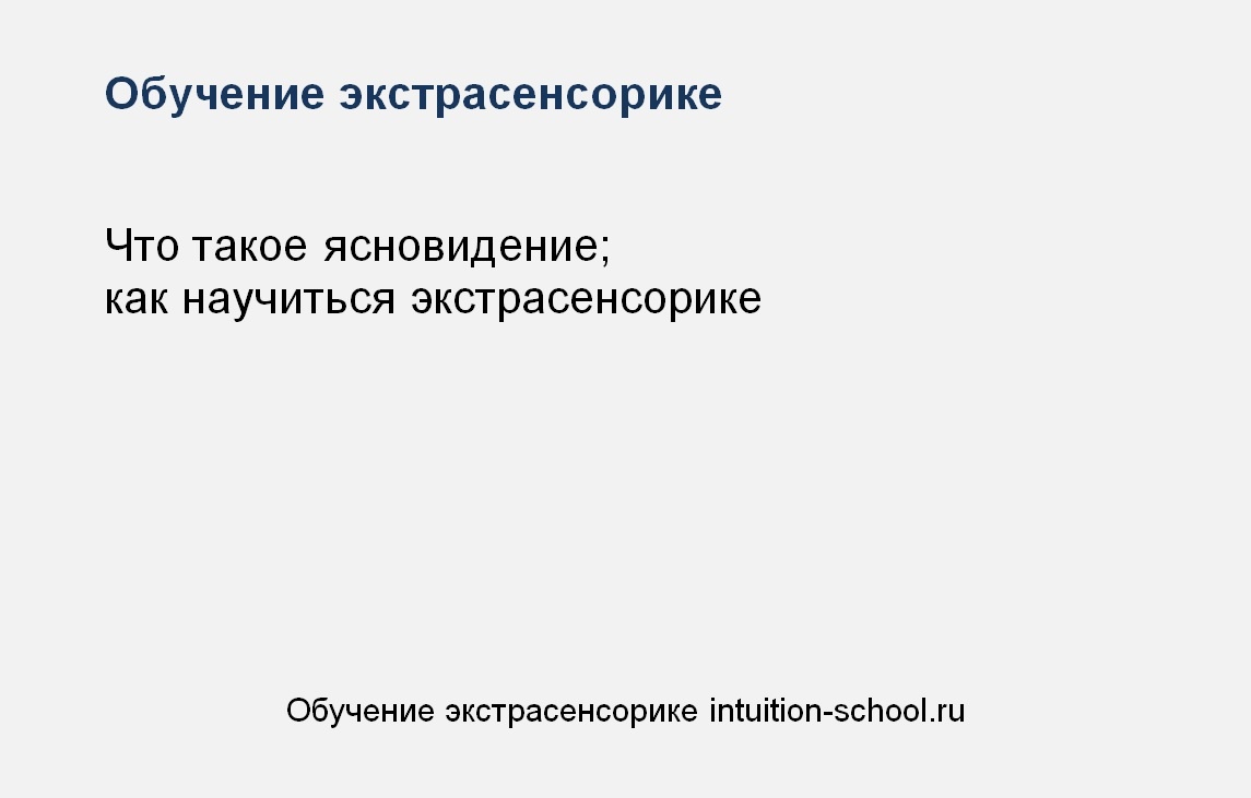 Дорогие друзья, в этой статье речь пойдет о том, что такое ясновидение. Ясновидение – это то же самое, что и экстрасенсорное восприятие (ЭСВ). А экстрасенсорное восприятие – это получение информации без посредства органов чувств. Слово «ясновидение» – это синоним слова «экстрасенсорика». Однако слово «ясновидение» состоит из двух слов: «ясно» и «видение». Поэтому некоторые исследователи этого явления считают, что ясновидение имеет место тогда, когда человек на своем мысленном экране видит зрительные образы, несущие в себе информацию о внешнем объекте, информация о котором не доступна органам чувств. Различают также яснослышание, яснознание и другие подобные явления. Так яснослышание – это когда человек слышит звуки, несущие в себе информацию об объекте, не доступном органам чувств. Ясновидение, яснослышание, яснознание есть частные случаи экстрасенсорного восприятия. Что такое экстрасенсорное восприятие? Доступ к информации, которую нельзя получить с помощью органов чувств, имеет подсо