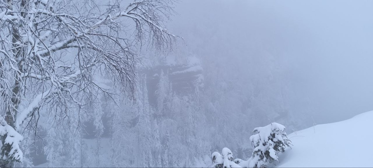 🏞 Суровая и прекрасная природа Северного Урала образует уникальные пейзажи - один из них показывает как Ветлан и Вишера засыпают под снегом. ❄️ Зимний покров потихоньку укутывает и реку, и камень. На Вишере устанавливается ледяной покров, формируются снежные заносы. Снег, попадая на вертикальные поверхности Ветлана, слеживается и уплотняется. Ветер - решающий агент перераспределения снега. На открытых участках реки и на вершинах скал потоки ветра несут пухлый снег, образуя продолговатые или волнообразные барханы. Их форма зависит от направления и скорости ветра, а также от характеристик снега. 🌨 Зимний покров оказывает многогранное влияние и на флору и фауну региона. Для растений снежный покров - естественный утепляющий слой, защищающий корневую систему от экстремального промерзания. Для животных он может служить как укрытием, так и препятствием: многие млекопитающие прокладывают тропы под снегом, птицы меняют миграционные маршруты, а хищники адаптируют способы охоты. На реке ледян