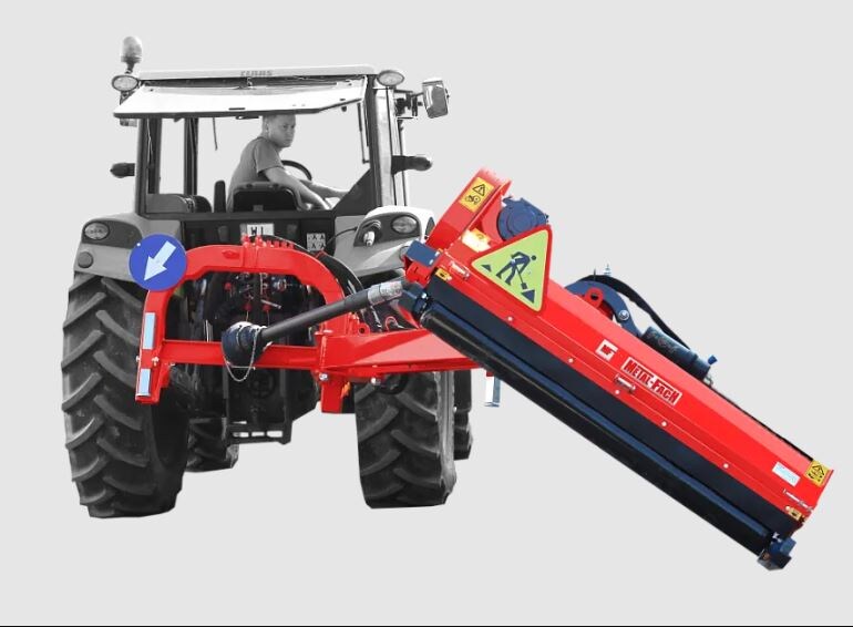 Возможность дистанционно сместить косилку на 20 см. вправо или влево позволяет качественно обрабатывать кромку дороги, безопасно работать на склонах кюветов, обрабатывать сложный рельеф и участки вокруг столбов, ограждений, деревьев, минимизируя ручной труд. Оператор может управлять косилкой прямо из кабины трактора, что значительно повышает безопасность.