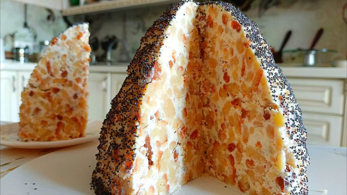 Подбиваю мак у основания торта просто ножом. Готовый торт убираю в холодильник до следующего дня.