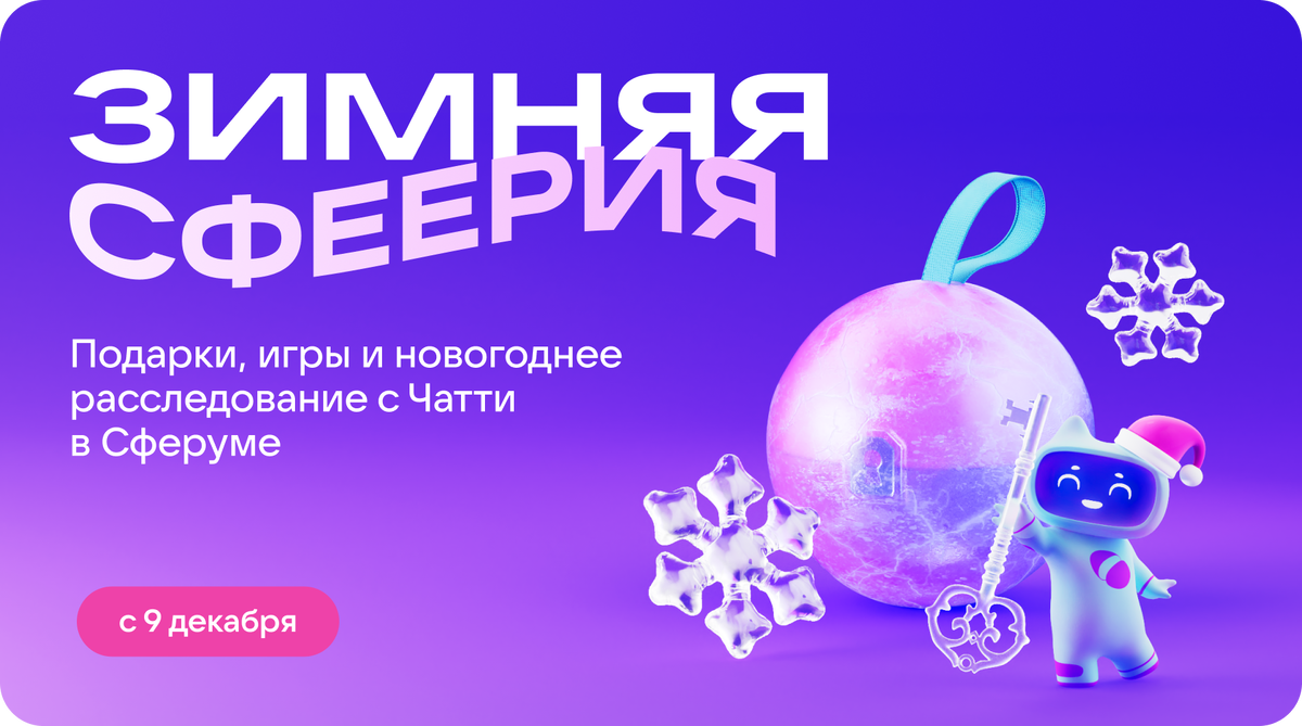 9 декабря в группе Зимней Сфеерии мы запустили специальное новогоднее расследование. Каждый день там появляются задания, которые помогут разморозить хорошее настроение. Можно участвовать всей семьёй — вместе решать загадки, помогать Чатти и создавать атмосферу праздника.