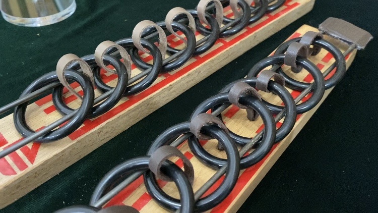 В те годы параллельно со мной пропагандировал игру и проводил соревнования по школам молодой человек некто Т. З. Но у него был совсем другой формат, если у меня все участники проходят через одну головоломку закрепленную на столике. У него участники сидят каждый за отдельным столиком и со своим спортивным снарядом и своим судьей секундантом. Позже я познакомился с ним, предлагал проводить соревнования в моем формате, более того я изготовил для него столик для соревнования. Соревнования по скоростной разборке головоломки, самый демократичный вид состязаний, здесь могут одновременно участвовать желающие, не взирая на возраст, пол, весовую категорию. Можно проводить командные соревнования в виде эстафеты из трех участников: на первом этапе участник освобождает петлю и передает второму, тот заправляет петлю в кольца, третий снимает петлю и останавливает время.