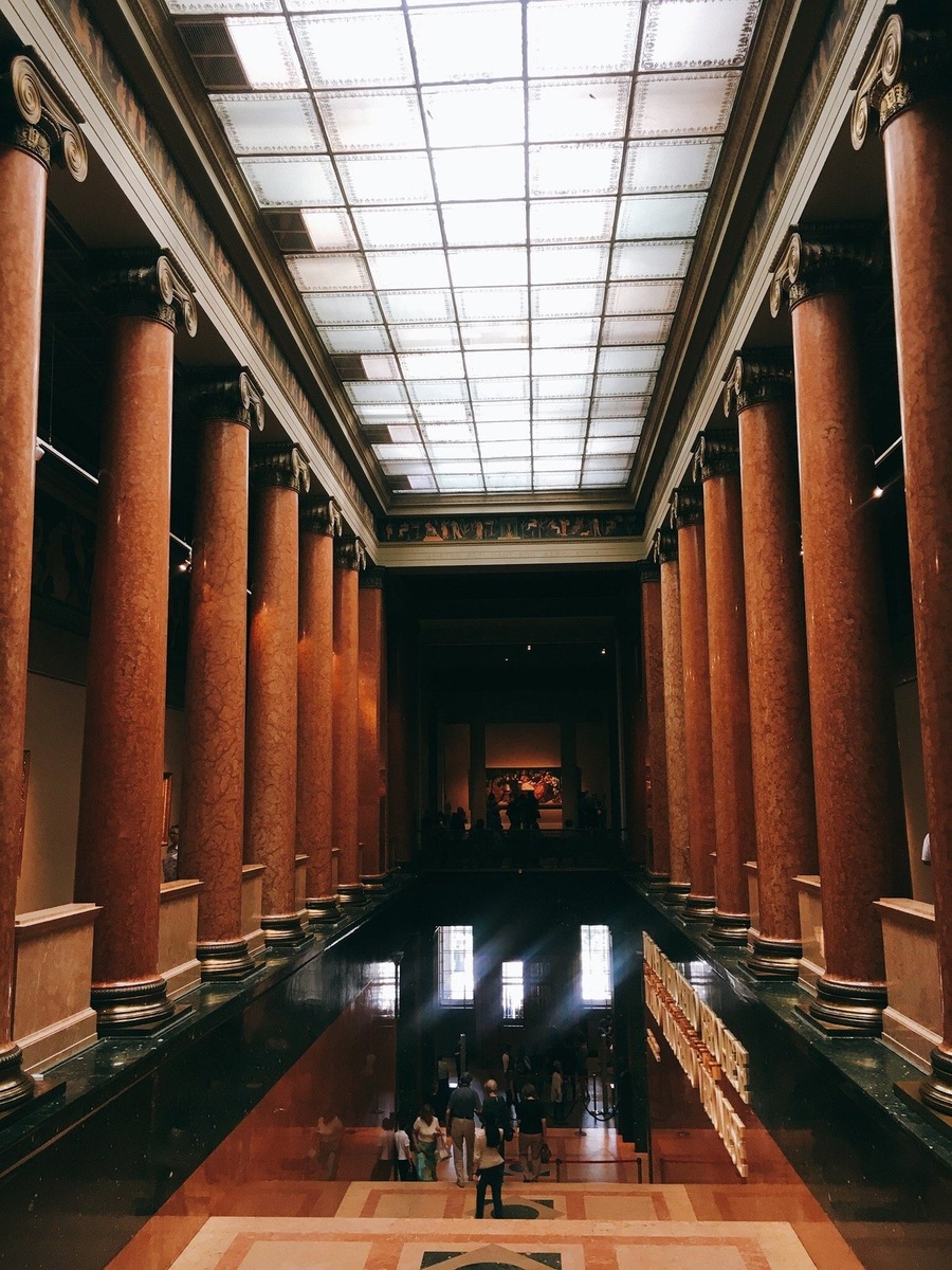 В Пушкинском музее идёт выставка «Марк Шагал. Радость земного притяжения». Это первый за 40 лет масштабный показ его «русского периода»: от раннего Витебска до эмиграции в 20-х. Я сходила на открытие выставки и многие работы художника увидела впервые. Для полного погружения рекомендую прочесть автобиографию Шагала «Моя жизнь». Дополнит впечатления, а цитаты из книги проходят сквозь все тексты выставки. Кураторы постарались воссоздать контекст жизни художника тех лет. Колонны в залах укрыты голубыми чехлами — отсылают к любимому цвету Шагала; работы с улочками Витебска, парикмахерскими, лавками. С мамой, дядей и сестрой. Даже воссоздали комнату его семьи с подлинной мебелью, которую привезли прямиком из Витебска. Хрестоматийные вещи — «Над городом», «Голубые любовники», «Венчание» — тоже присутствуют. Меня особенно зацепили ранние циклы, рисунки времён Первой мировой. Тут в сказочный мир Марка врывается страх. На одной из работ еврей стоит на фоне окна, и переплёт рамы за спиной образ