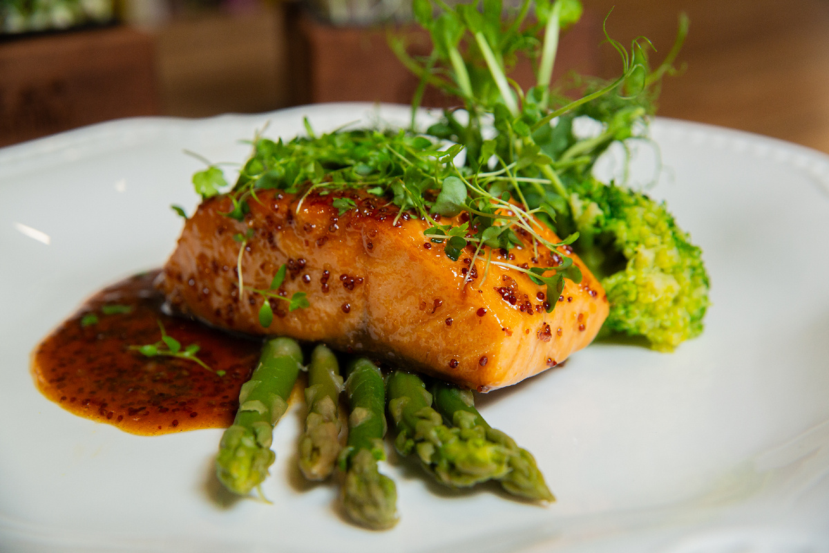 Среди новогодних рецептов CressFather уже есть быстрые и эффектные закуски — яйца кокот со шпротами и ролл селёдка под шубой. Сегодня предлагаем горячее блюдо, которое подойдёт для главного праздничного ужина. Лосось с апельсиновой глазурью, пюре из зелёного горошка, овощи и свежая микрозелень — эффектно и очень вкусно. А главное — не занимает много времени, всего 30 минут. Рецептом делится Андрей Борисов, шеф студии Юлии Высоцкой и друг проекта CressFather. 🛒 Ингредиенты (на 1 порцию) Основное: Лосось (филе) — 200 г. Спаржа — 100 г. Брокколи — 100 г. Пюре из зелёного горошка: Зелёный горошек (замороженный) — 120 г. Чеснок — 6 г. Сливочное масло — 20 г. Соль, чёрный перец — по вкусу. Апельсиновая глазурь: Апельсиновый сок — 50 мл. Соевый соус — 20 мл. Мёд — 20 г. Дижонская горчица — 20 г. Для подачи: Микрозелень (горох, сельдерей, брокколи) — 40 г. 🌿 🥘 Приготовление ✔️ Шаг 1. Пюре из горошка. В сотейник выложите зелёный горошек, сливочное масло и влейте 60 мл воды. Добавьте чеснок
