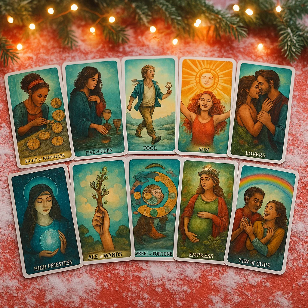 Девятка Кубков — исполнение желания. Звезда — надежда, которая оправдывается. Десятка Кубков — эмоциональное счастье, ощущение «я дома». Это не иллюзия. Это заслуженное. Карты говорят: ваша радость будет больше, чем вы ожидаете. Возможно, именно поэтому путь был таким сложным — чтобы вы научились ценить настоящее счастье.