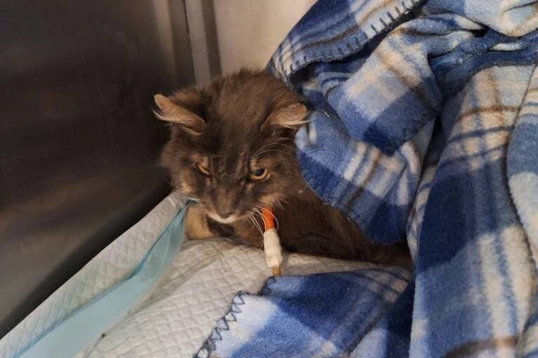 «Шипел и дрался»: В Петербурге чудом нашелся больной кот с трубкой в горле, который сбежал из переноски и выживал на улице 10 дней