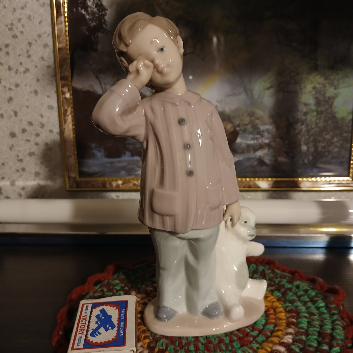 ТРОГАТЕЛЬНАЯ Фарфоровая Статуэтка Мальчик с игрушкой Мишкой соня 1980 е Испания LLADRO с рубля 2