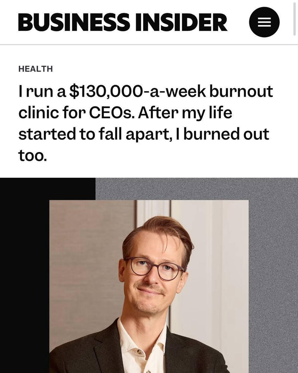 Привет, друзья! «Как клиника для миллиардеров стала для основателя дорогой к депрессии» В мире, где успех часто измеряется толщиной кошелька и количеством нулей на банковских счетах, многие забывают о том, что даже самые состоятельные люди могут столкнуться с внутренними демонами. История Яна Гербера — основателя клиники для лечения выгорания среди миллиардеров — напоминает нам о том, что материальные блага не всегда приносят счастье. Представьте себе: предприниматель, который зарабатывал 130 тысяч долларов в неделю, помогая другим справиться с выгоранием, сам оказался в его плену. Ян Гербер столкнулся с депрессией, бессонницей и распадом брака. Это история о том, как легко можно потерять себя в погоне за успехом и как важно не забывать о своём ментальном здоровье. Каждый из нас может столкнуться с трудностями, независимо от нашего социального статуса или уровня дохода. Важно помнить, что забота о себе — это не признак слабости, а признак силы и мудрости. Не бойтесь обращаться за помощ