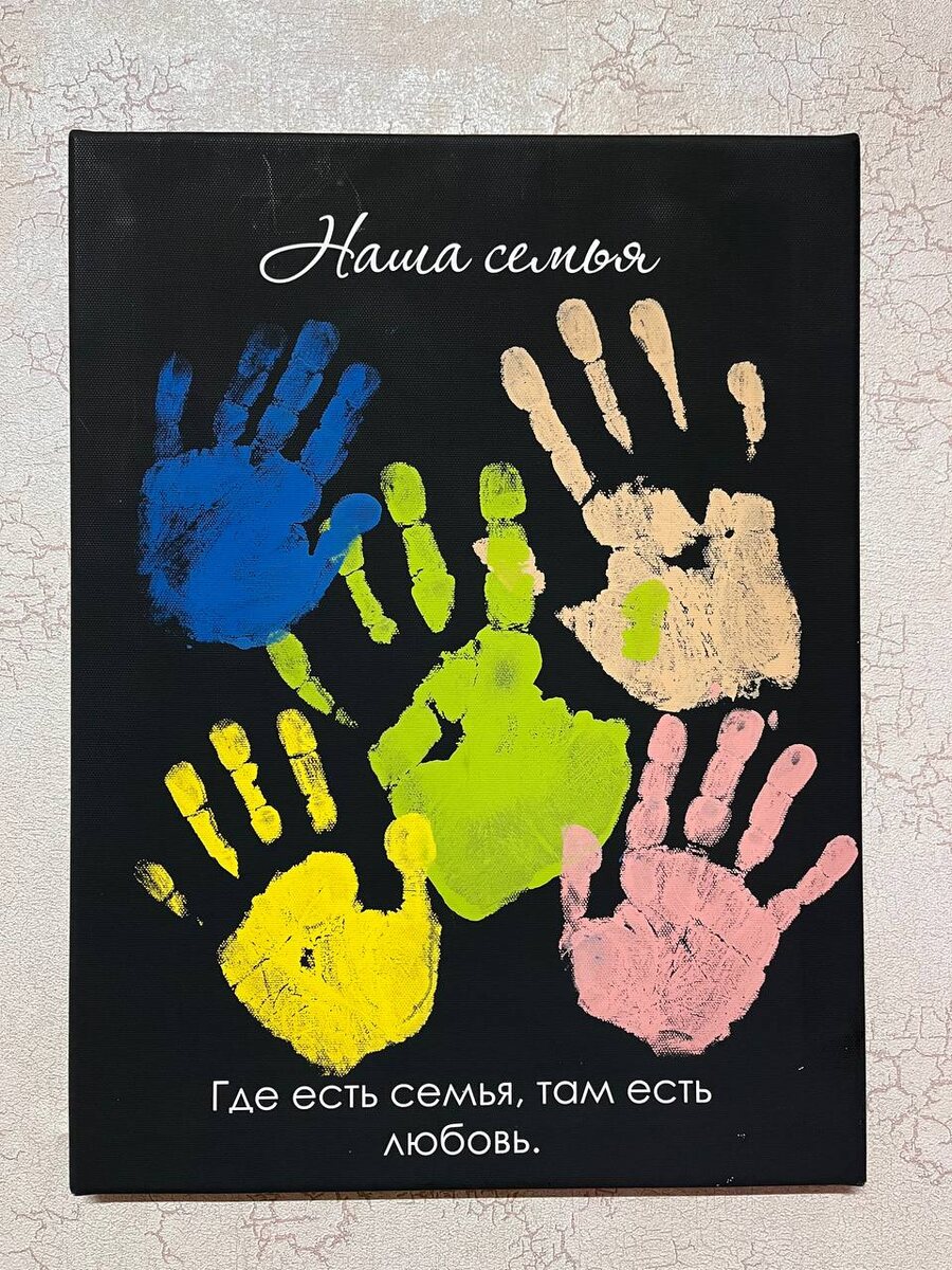 Пришло время для этой картины 🥰 Эту заготовку мне подруга подарила в мой день рождения, я всё откладывала разукрасить её нашими ручками, но видимо сегодня пришло время! Как думаете, где чьи ладошки? 😊
