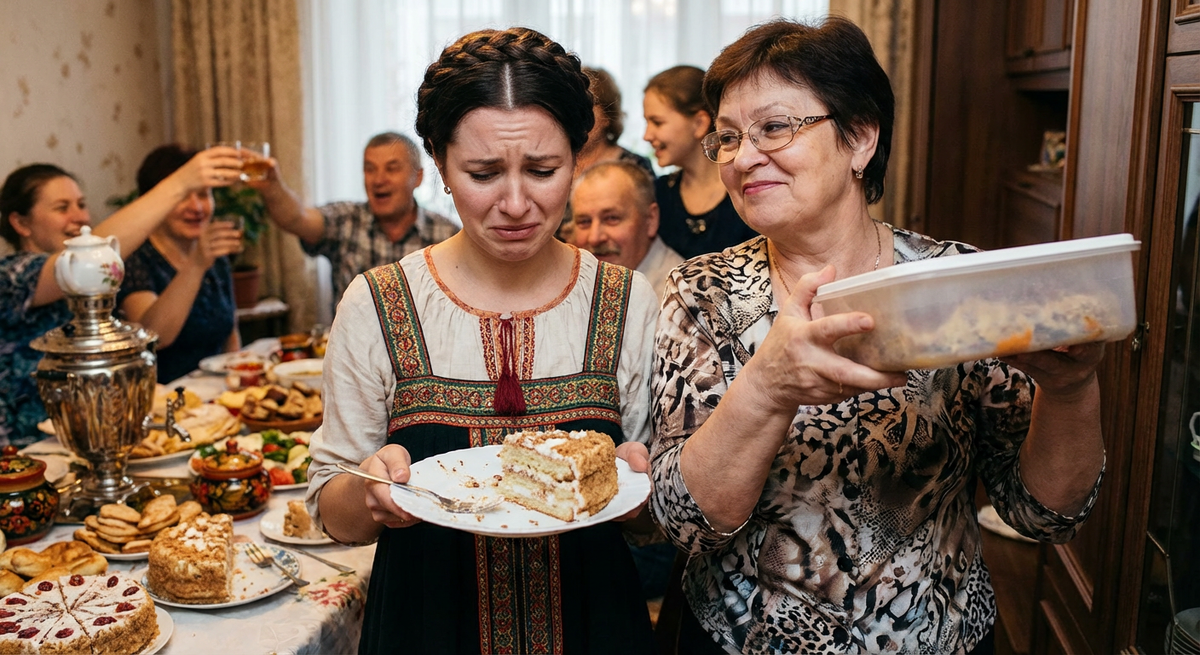 Алина доставала торт из духовки, когда в дверь позвонили. Рано. Гости должны прийти через час. Она вытерла руки о фартук, пошла открывать. На пороге стояла свекровь Валентина Петровна с большим контейнером в руках.