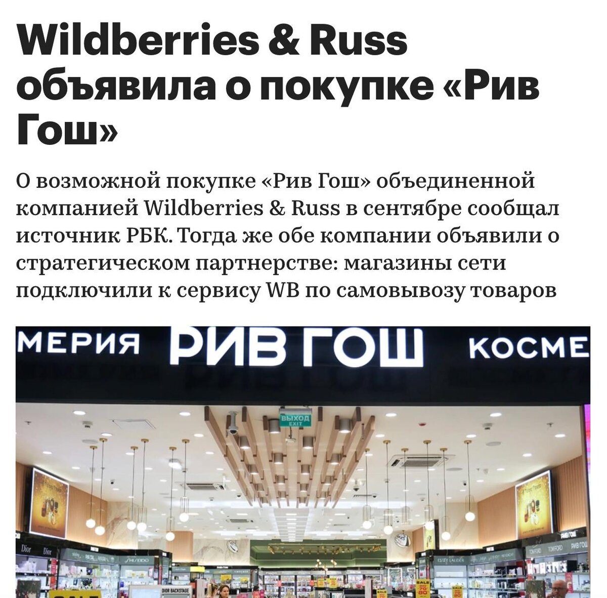 WB купил сеть Рив Гош, 252 магазина. Сделка обошлась в 6 млрд рублей.