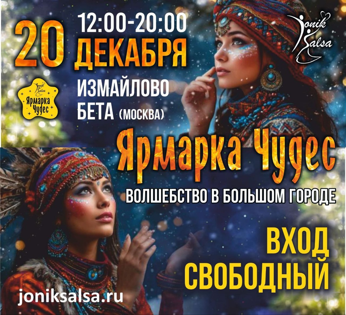 🔊 Всем! Всем! Всем! Приглашаем вас на «Ярмарку Чудес-14» 🗓️ Когда? 20 декабря 12:00-20:00 📍 Где? Москва, гостиница Измайлово бета, 3 этаж зал Форум https://joniksalsa.ru/vremena_igr14 Чего там только не будет! 🌟Мастера уникальных товаров 🌟Консульты (таро, астрология и прочие направления) 🌟Трансформационные игры 🌟Мастер-классы 🌟Телесные практики (массаж, шиацу, цигун, танцы, йога...) 🌟Выступления артистов 🌟Вкусный обед и многое другое... 😉 Для гостей вход свободный! 🔴 Подробнее: https://joniksalsa.ru/vremena_igr14 🔵 Канал в ТГ https://t.me/+UUn0VIvWE7I5MGYy 🟢 Вотсап группа https://chat.whatsapp.com/Gva6z569BcG1sQwnNW1YcJ 🔵 ВК https://vk.com/jonik_salsa