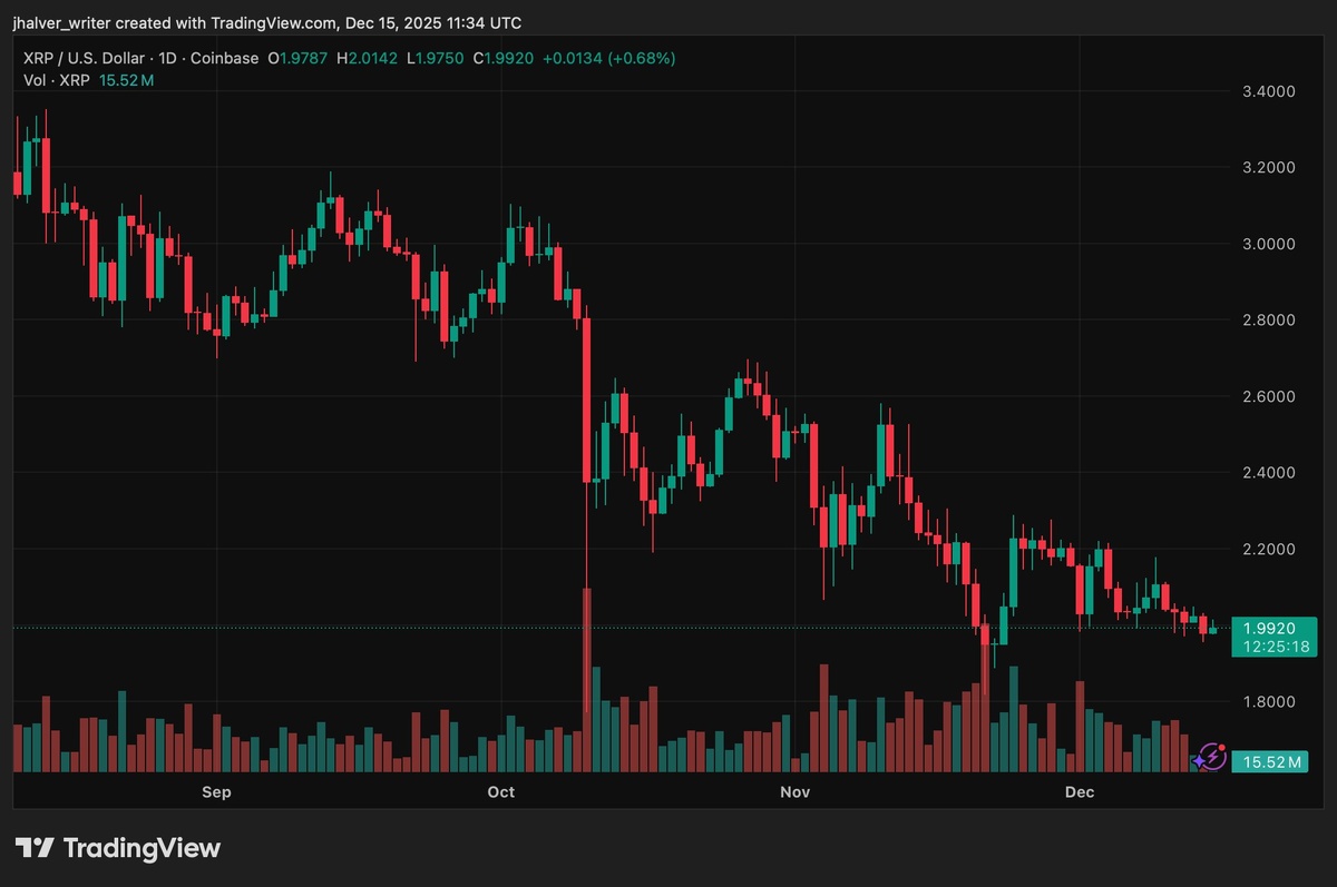 🎯 Почему XRP не реагирует на крупные институциональные и региональные события Цена: $2.00 (близкая к психологическому уровню) 📈 Несмотря на $300 млн вложений в Южной Корее и почти $1 млрд в Spot‑ETF, цена XRP упала более чем 12 % за месяц. Технические сигналы — «death cross» и двойная вершина — указывают на дальнейший нисходящий тренд, а низкая ликвидность и активный арбитраж сдерживают движение. 📊 Ключевые моменты: - $990 млн входов в Spot‑ETF за 30 дней, но -12 % по цене за месяц - Техническое сопротивление $2.00–$2.20, поддержка $1.63–$1.50 - Низкая торговая активность и высокий уровень арбитража удерживают цену в узком диапазоне ⚠️ Риски: Общий рыночный риск‑откат и нехватка ликвидности Горизонт: Краткосрочный