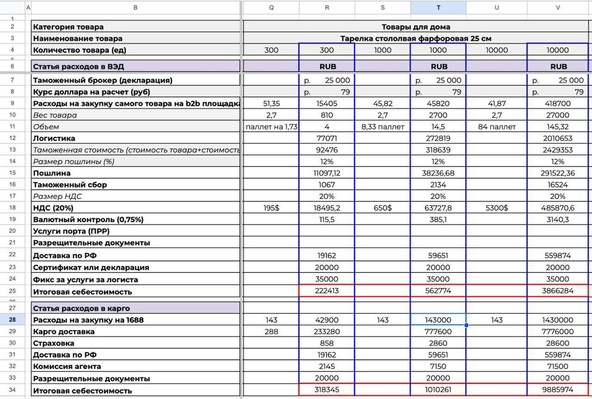 ?📦 Мы делали сравнительные расчеты при закупе разных товаров в белую и в серую, и также в разных количествах. ⁉️Больше всего вопросов у нас вызвал именно расчет тарелок столовых фарфоровых 25 см. А именно: Почему при закупе 1000 единиц цена в белую 45.820 против 143.000 рублей в сером ввозе? И при закупке 10.000 единиц цена в белую 418.700 против 1.430.000 рублей в серую? Всё на самом деле просто. При закупке в серую, а не у производителя напрямую, скидку на объем никто не даст. Мы об этой скидке договорились напрямую с фабрикой. Именно работая с производителями НАПРЯМУЮ, без посредников, мы имеем возможность закупать по самой низкой цене. 🏭Тысячи заводов в Китае заинтересованы в работе и готовы предоставлять такие скидки за бОльшие объемы🚚 Конечно, если просто просить скидку напрямую, маловероятно, что дадут. Это отдельный бизнес процесс, в котором важно уметь продать себя, как перспективных и надежных партнёров, с которыми выгодно будет работать. И здесь важно уметь искат