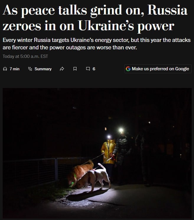 Украинская энергосистема «на пороге коллапса». Киев и восток Украины оказались на грани полного блэкаута Об это пишет Washington Post ссылаясь на украинских чиновников. Отмечается, что выйти из строя могут системы передачи электроэнергии между украинскими регионами, что приведет к «расколу энергосети» "Мы если не на грани полного блэкаута на востоке страны, то очень близки к этому", - приводит издание слова неназванного высокопоставленного европейского дипломата По данным WP, жители Киева проводят до 16 часов в сутки без электричества, а предприятия работают в основном на генераторах. Массовые многочасовые отключения света начались на всей территории Украины 10 октября. Власти заявляли о повреждениях энергетических сетей и коммунальных систем. Занимавшая на тот момент должность министр энергетики Светлана Гринчук называла ситуацию очень сложной @geonrgru | YouTube | sponsr.ru