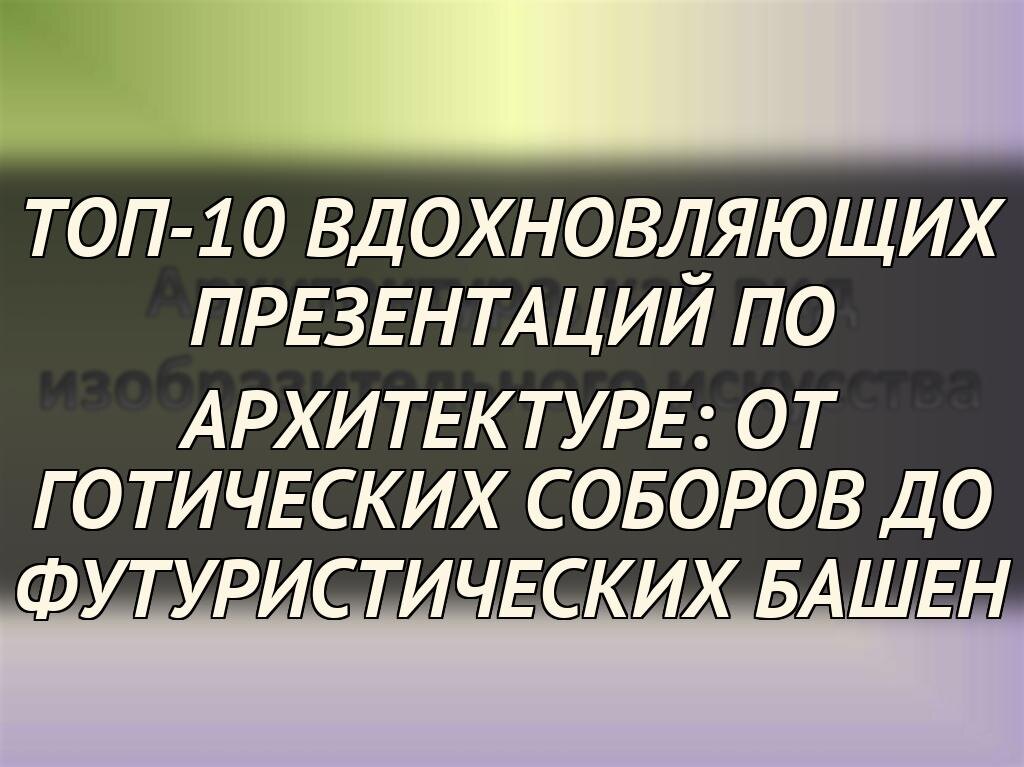 Все топ-10 презентаций, включая "Архитектура. Виды архитектуры", "Азбука архитектуры" и другие, доступны для скачивания на Кэмпус. Зарегистрируйтесь на платформе, чтобы получить доступ к высококачественным файлам с иллюстрациями и нотами презентаций.