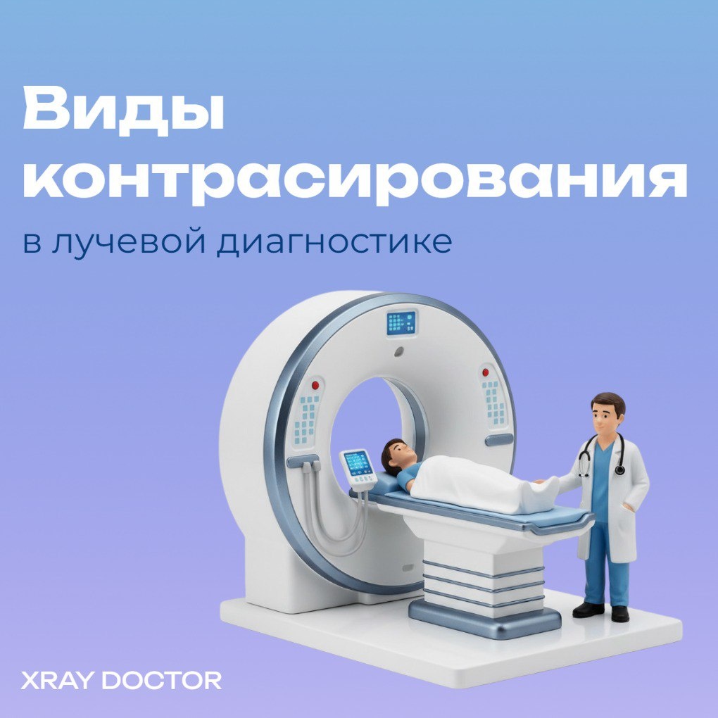 🩻Виды контрастирования в лучевой диагностике Контрастирование в компьютерной томографии (КТ) – это метод, при котором пациенту вводят специальное вещество, называемое контрастным препаратом, для улучшения визуализации определенных органов, тканей или сосудов на снимках. Контраст помогает врачам четче различать структуры, выявлять патологии и определять их характеристики. Существует несколько видов контрастирования, которые используются в КТ, в зависимости от цели исследования и области тела, которую необходимо визуализировать. 1. Внутривенное контрастирование: — Техника введения: контрастный препарат вводится в вену, обычно в руке. Препарат распространяется по кровотоку и улучшает видимость кровеносных сосудов, органов и тканей, имеющих интенсивное кровоснабжение (например, опухолей). — Применение: Наиболее распространенный вид контрастирования. Используется для визуализации органов брюшной полости (печень, почки, поджелудочная железа), органов грудной клетки (легкие, средостение),