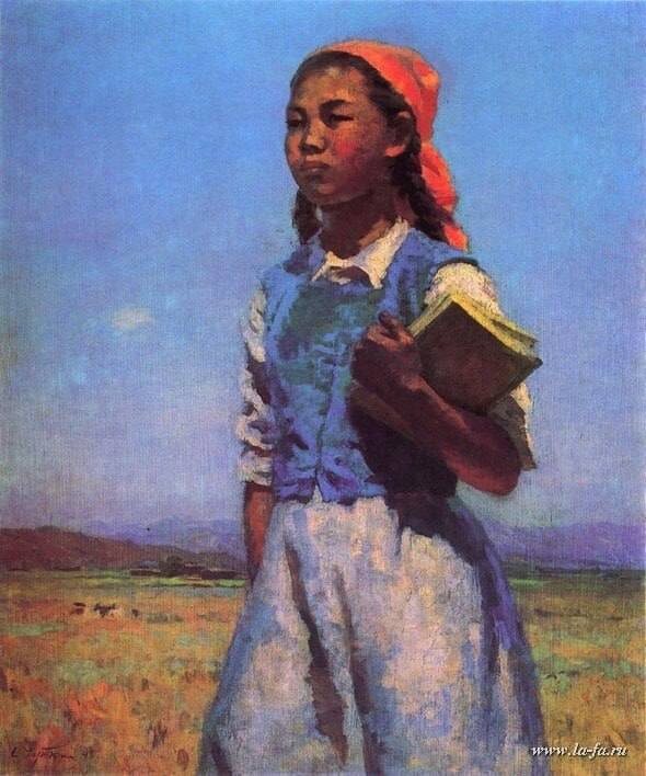 "Дочь Советской Киргизии" Семёна Чуйкова и её современная интерпретация на фасаде школы №12 в Бишкеке. 🌟