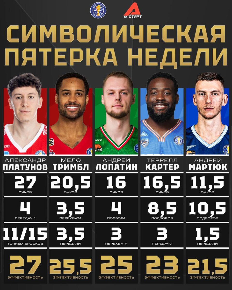 😎 Знакомьтесь, это лучшие игроки недели Эти парни здорово показали себя в Единой Лиге ВТБ. Изучаем перформансы Платунова, Тримбла, Лопатина, Картера и Мартюка. Кого признаем самым ценным баскетболистом? 😏 🛒 Наше приложение в Google Play 💙 Наше приложение в RuStore 🛒 Наше приложение в App Store