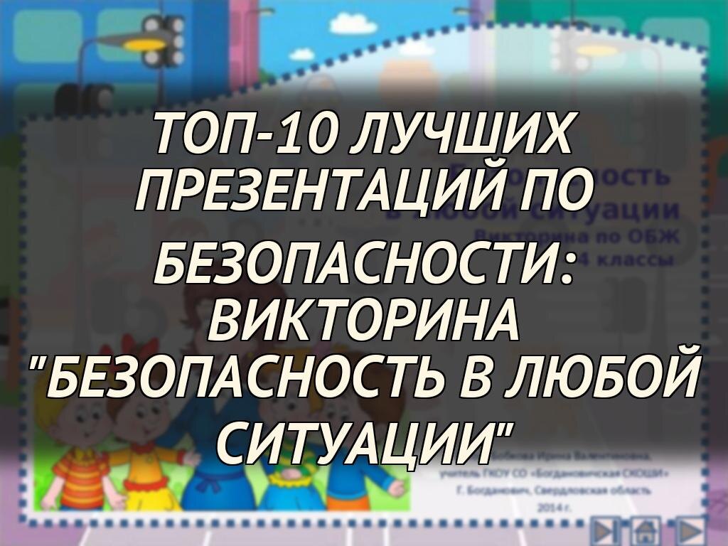 1. ⭐ Безопасность в любой ситуации Викторина по ОБЖ 1–4 классы автор: Бобкова Ирина Валентиновна, учитель ГКОУ СО «Богдановичская СКОШИ» г. Богданович, Свердловская область, 2014 г.