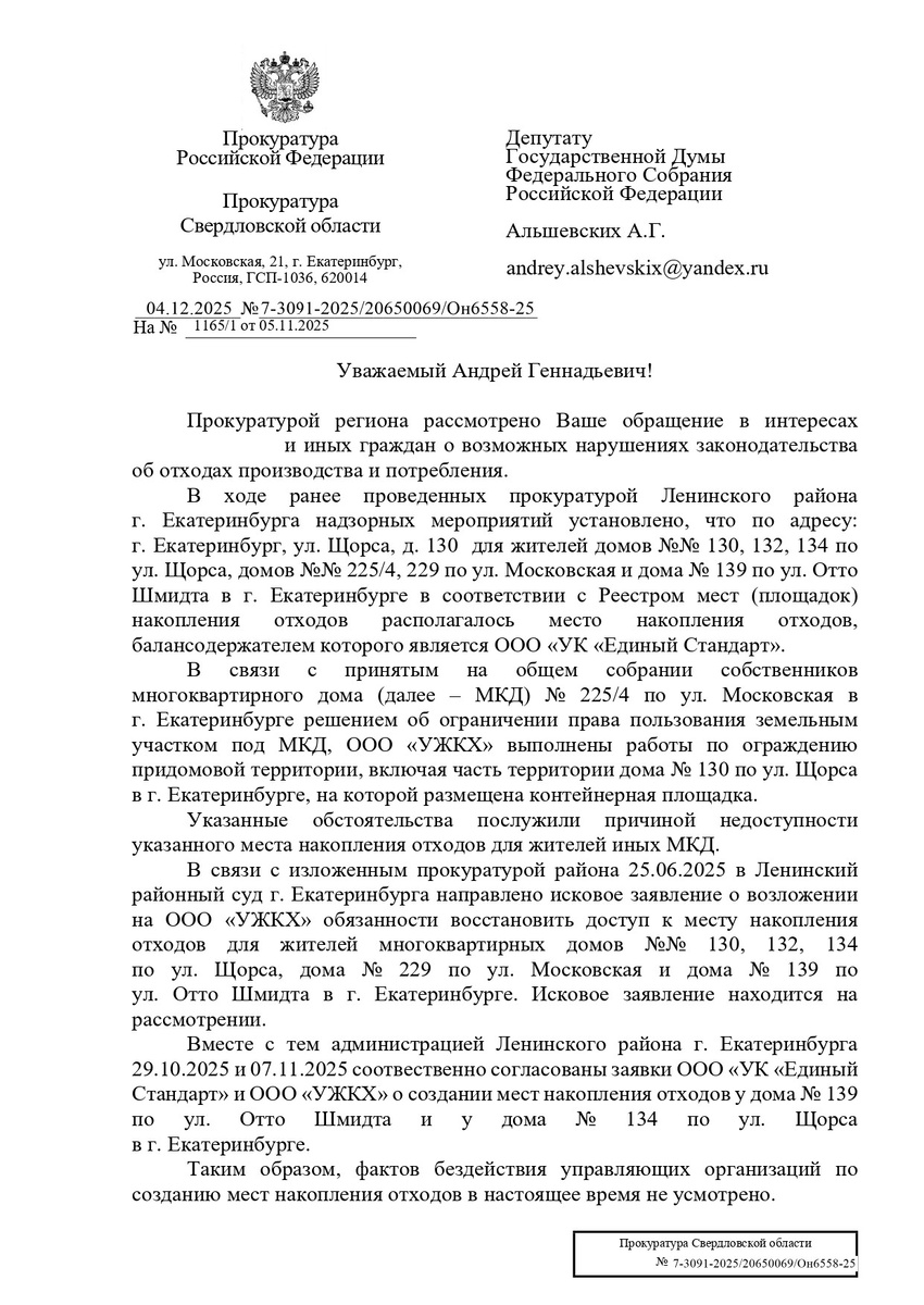 Требую от ответственных, чаще всего муниципалитетов, строить, наводить порядок, ремонтировать, а также узнаю сроки работ. Представитель инициативной группы с Московской, 225/4 в Екатеринбурге жаловался на бардак с контейнерными площадками возле дома. Еще летом городские власти давали поручение обслуживающим организациям навести порядок. А воз и ныне там. Запросил разъяснения у прокуратуры и непосредственно у администрации.