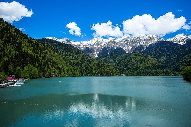 - Озеро Рица, где небо отражается в воде как в зеркале