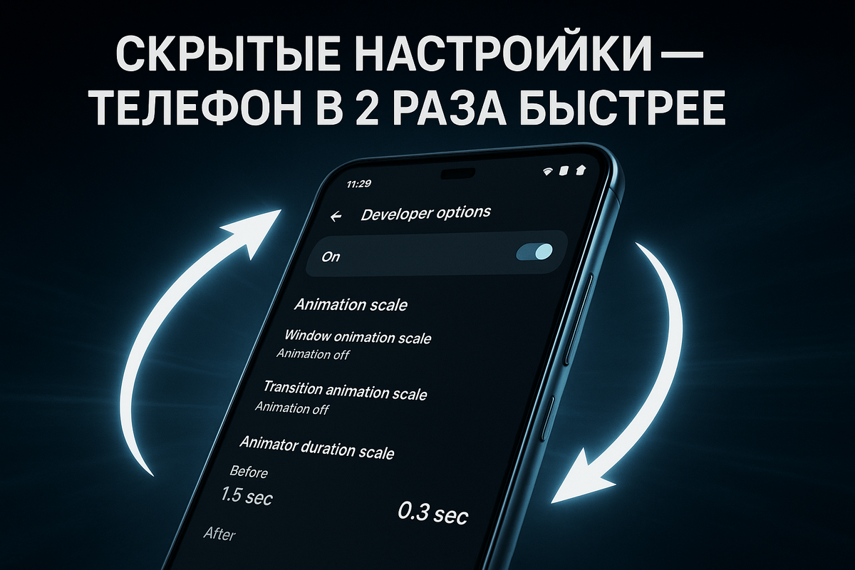 Важно: Это не ускоряет процессор. Но визуально телефон работает быстрее (нет задержек на анимацию).