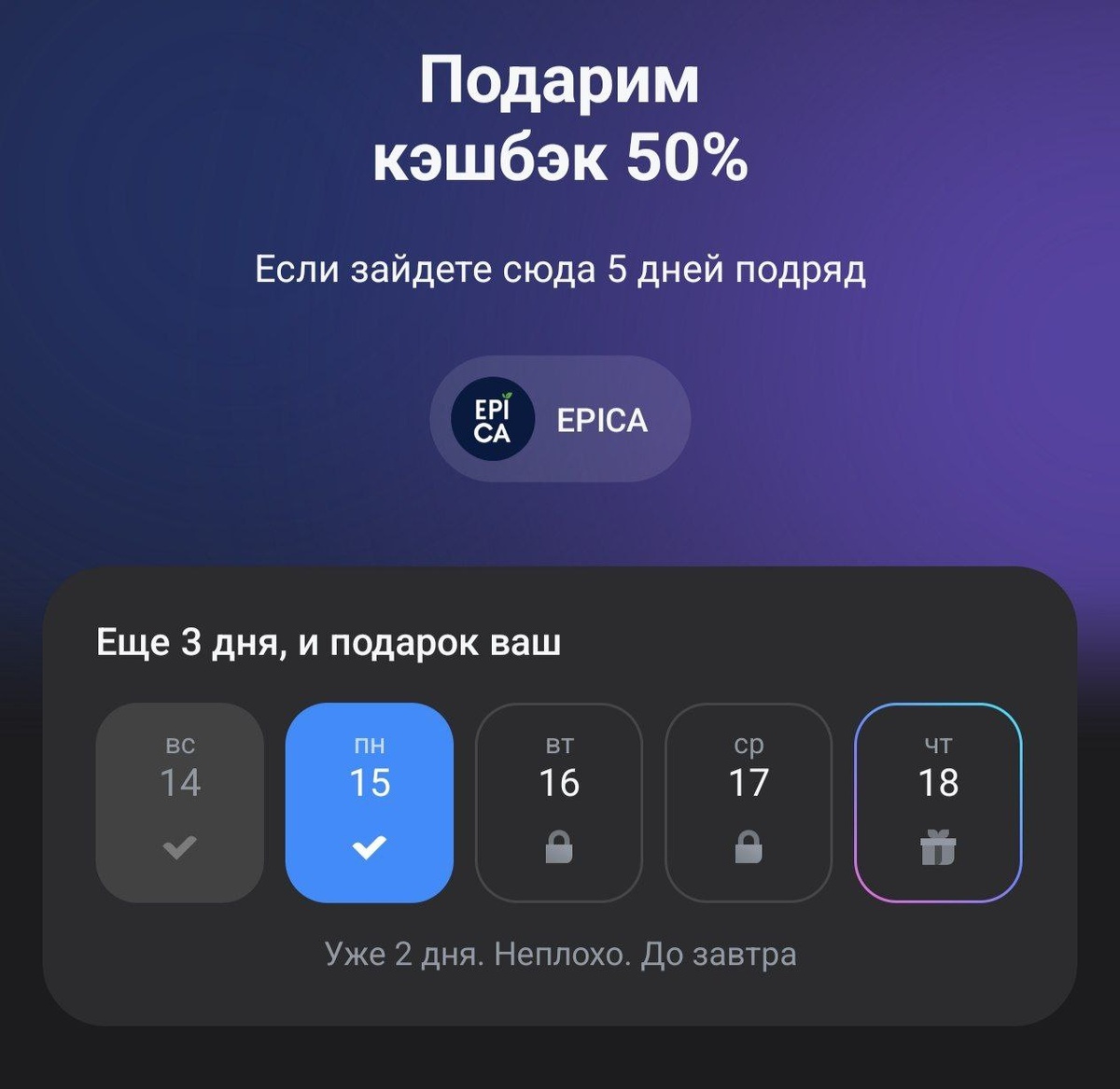 Кэшбэк 50% на Epica в Т-Банке