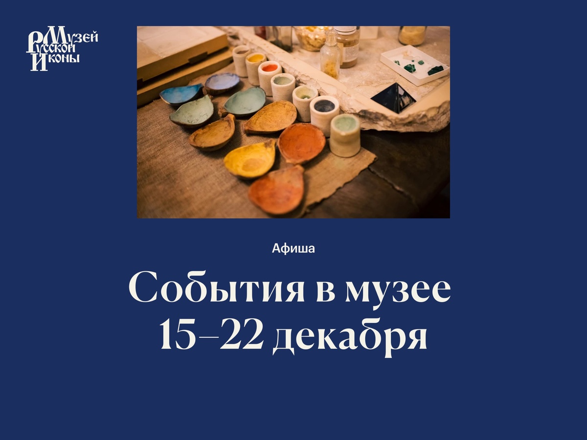 События в музее | 15–22 декабря Рассказываем о мероприятиях в музее и ждем вас в гости! 🔸 С 4 декабря 2025 по 3 марта 2026 Расширенная экспозиция искусства XVII века «Памяти боярыни Феодосии Морозовой. К 350-летию мученической кончины. Иконы и книги XVII столетия». Вход свободный, по графику работы музея. Подробнее о проекте Экскурсии 16–23 декабря Обзорные и тематические программы на любой вкус. 🔸 Посмотреть подробнее и записаться по ссылке. 18 декабря, четверг, 19:00 Онлайн-лекция «Богоявление Господне». Лектор – В.В. Зуйков. 🔸 Регистрация не требуется, трансляция по ссылке. Запись останется на канале. 19 декабря, пятница, 19:00 Онлайн-лекция «Ангелы и демоны в эфиопском искусстве». Лектор – В.З. Куватова. 🔸 Регистрация не требуется, трансляция по ссылке. Запись останется на канале. 20 декабря, суббота, 19:00 Концерт «Русская музыка: фортепиано и кларнет». В программе — произведения С. В. Рахманинова и П. И. Чайковского. 🔸 Регистрация откроется: 15 декабря, 19:0