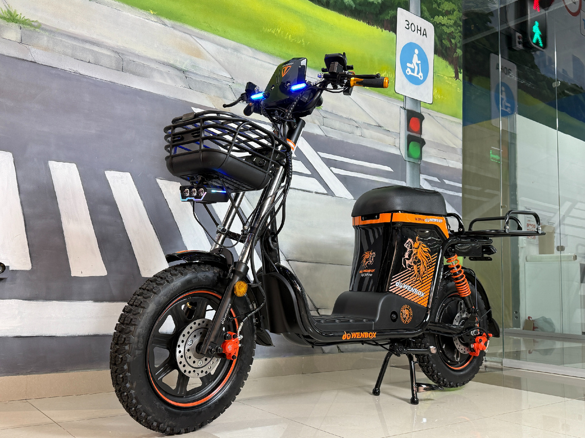 Когда я впервые сел на Wenbox U3 Pro, сразу почувствовал, что это не обычный городской электровелосипед. Он тяжеловатый, основательный, и с первого движения понятно - здесь всё сделано для реальной езды, а не для того, чтобы просто красиво стоять во дворе. Мотор 1200 Вт легко разгоняет велосипед, а батарея 60 V/30 Ah позволяет проехать до 80 километров. Максимальная скорость около 60 километров в час - это заметно быстрее, чем у большинства «городских» моделей, и даёт уверенность, что успеешь куда угодно, не торопясь. Колёса 16 дюймов с гидравлической подвеской и дисковыми тормозами делают езду мягкой и стабильной даже на плохом покрытии. Рама стальная, двухподвес хорошо амортизирует неровности, а вес 60 килограмм придаёт велосипеду ощущение уверенности. Максимальная нагрузка до 200 килограмм позволяет не думать о том, что везёшь — будь то багаж или пассажир.