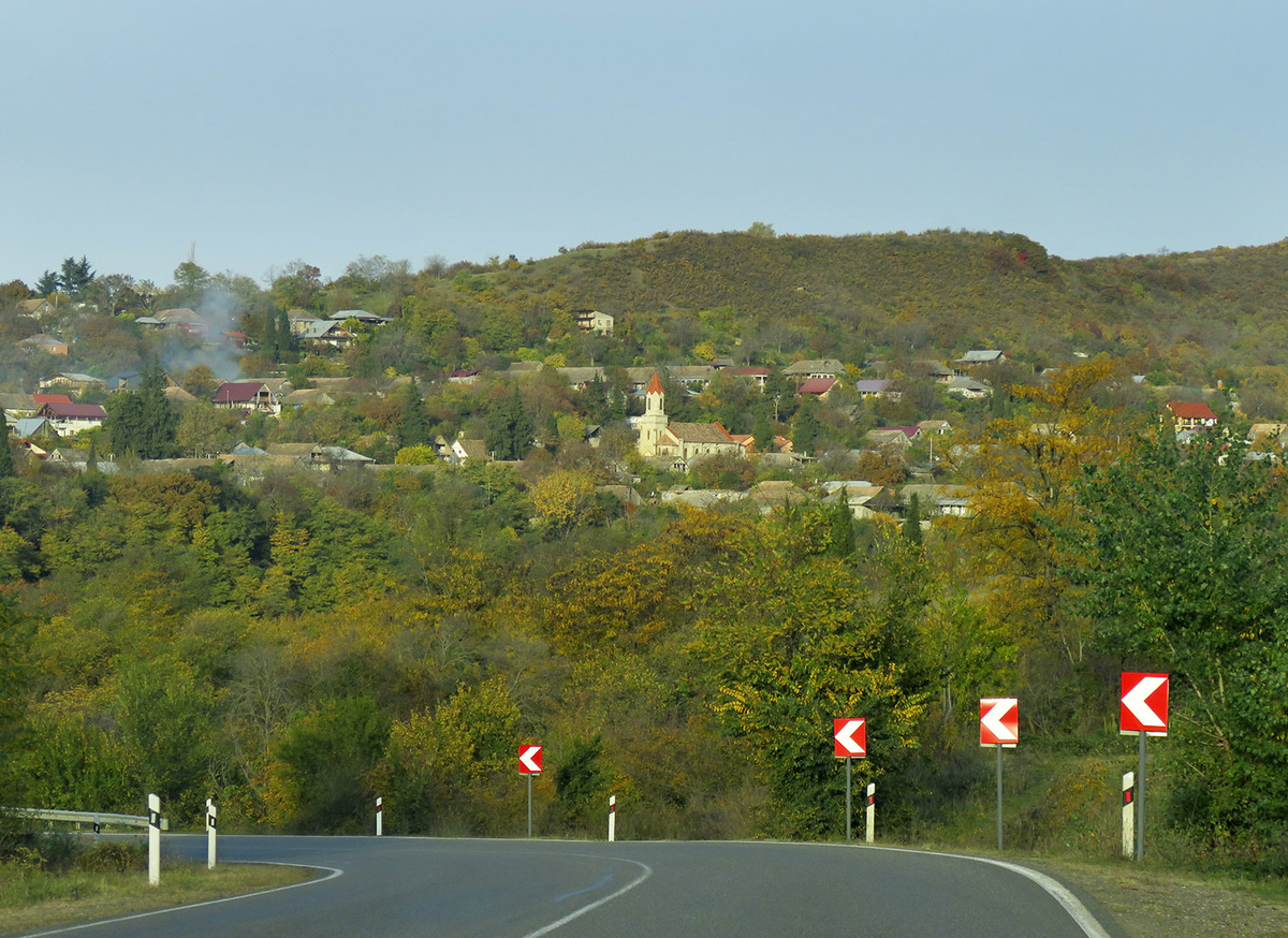 С другой стороны - черепичные крыши села и вьющаяся чуть ниже трасса: