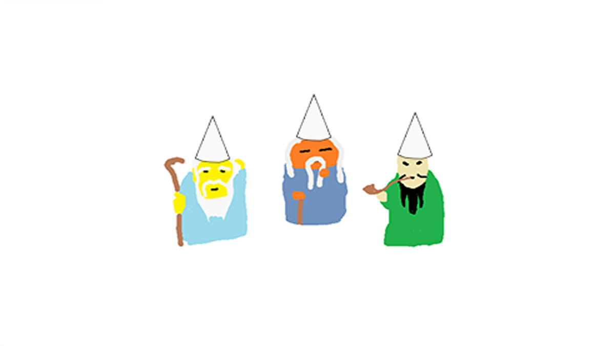 Загадка трёх мудрецов и пяти колпаков В замке короля служат три мудреца: Аристарх, Бенедикт и Целестин. Они знают, что их мудрость — лучшая в королевстве. Однажды король, желая испытать их, придумал сложнейшее испытание. Он привел мудрецов в свою сокровищницу и показал им пять колпаков: три черных и два белых.