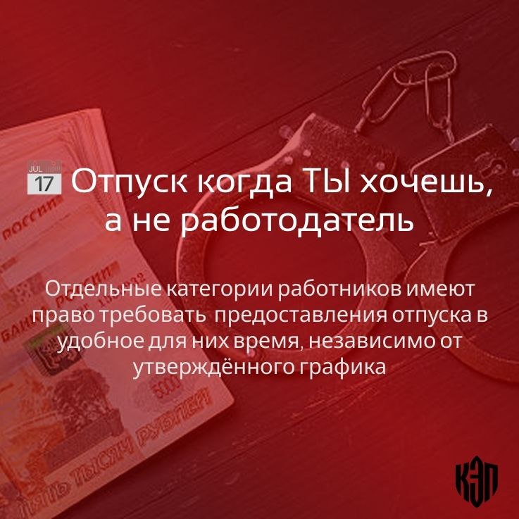 Но для некоторых категорий работников право на отпуск в удобное время является гарантированным. В этом посте мы разберем, кто имеет такое право, как его правильно оформить и что делать, если работодатель отказывается идти навстречу. Читать подробнее Записаться на консультацию 👉О нас #АдвокатМосква #ЮККЭП #Отпуск #Суд 👩💻 Помощница адвоката Пехота Мария