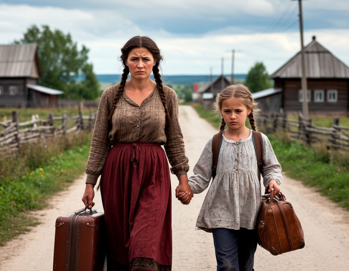 На том и порешили . Через две недели ранним утром шли по селу Анна впереди , а за ней с чемоданами семенили Надя и Ниночка .